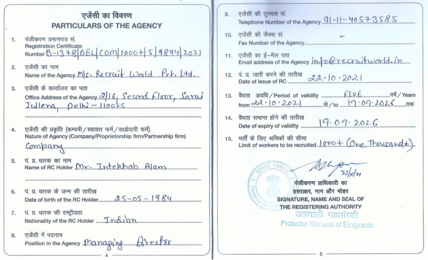 Recruit World Private Limited is a government-approved recruitment agency holding a valid Indian Recruiting License, ensuring fully compliant and legally authorized manpower operations. This certification reflects our adherence to strict regulatory standards and ethical recruitment practices as mandated by the Ministry of External Affairs. It enables us to deploy skilled and qualified professionals for overseas employment with complete transparency and documentation accuracy. Our licensed status reinforces client trust, guaranteeing safe, reliable, and accountable workforce solutions.